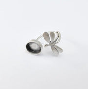 Dragonfly Ring Setting, Cabochon Blank, Resin Bezel, Round Ring Mounting Epoxy Frame Base Adjustable Antique Silver Plated Brass 12mm G36734