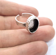 Ring Blank Setting Hammered Ring Base Bezel inlay Ring Backs Glass Cabochon Mounting Adjustable Antique Silver Plated Ring (14x10mm ) G16087