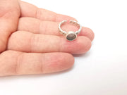 Ring Setting, Cabochon Blank, Resin Bezel, Round Ring Mounting, Epoxy Frame Base, Adjustable Antique Silver Plated Brass 8mm G35843