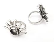 Sun Ring Setting , Band Ring, Round Ring Blank , Cabochon Mounting, Adjustable Resin Base Bezels, Antique Silver Plated Brass (8mm) G28704