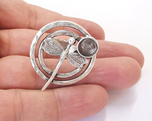 Dragonfly silver ring setting resin blank cabochon base inlay Ring mounting Adjustable Ring Bezel Antique Silver Plated Brass (8mm) G25971