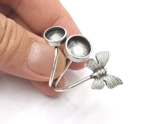 Butterfly silver ring setting blank cabochon mounting Adjustable ring base bezel Antique Silver Plated Brass (8 mm blank) G26130