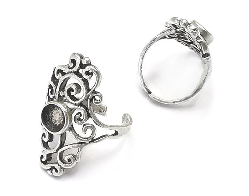 Ethnic silver ring blank base bezel settings Cabochon base mountings Adjustable (6mm Blank) , Antique Silver Plated Brass G26360