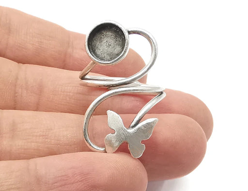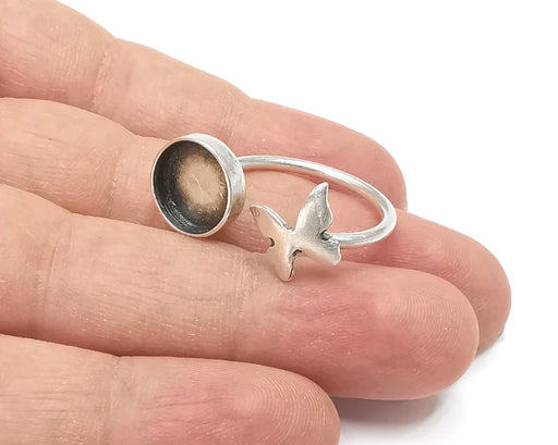 Butterfly silver ring setting blank cabochon mounting Adjustable ring base bezel Antique Silver Plated Brass (8 mm blank) G26201