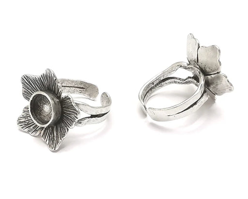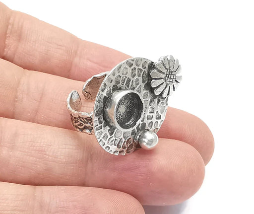 Flower silver ring setting blank cabochon mounting Adjustable ring base bezel Antique Silver Plated Brass (8mm) G26344