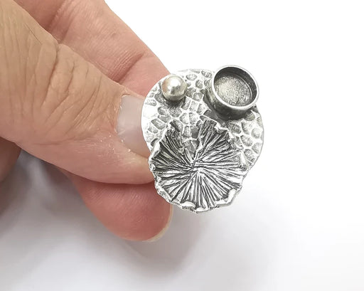 Flower ball hammered disc blanks silver ring setting cabochon mounting adjustable ring base bezel Antique silver plated brass (8mm) G26381