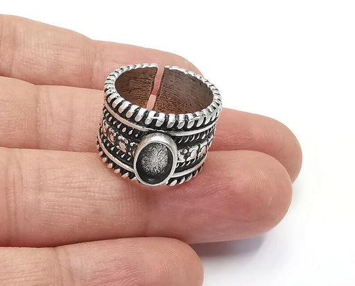 Ethnic silver ring blank base bezel settings Cabochon base mountings Adjustable (9x6mm Blank) , Antique Silver Plated Brass G26373