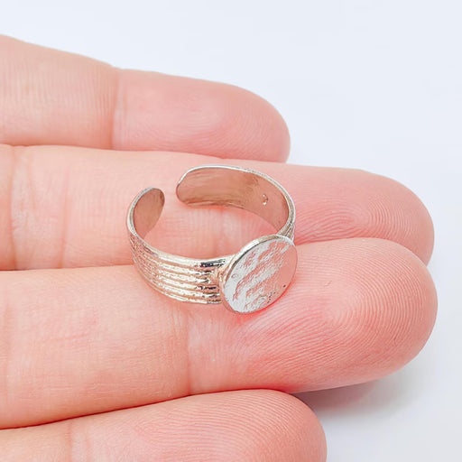 Adjustable Ring Base with 10mm Round Blank, Shiny Silver Plated Brass, Nickel Free Lead Free, Jewelry Making Supplies, G37455