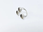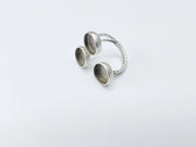 This triple bezel adjustable ring base is crafted from solid brass and finished with antique silver plating, offering a sturdy and elegant foundation for your handmade jewelry. Each bezel measures 10mm in diameter perfect for filling with resin, cabochons, crystals, or miniature artwork. A great choice for professional jewelry makers and hobbyists alike.