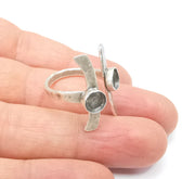 Silver Ring Setting, Cabochon Blank, Resin Bezel, Round Ring Mounting, Epoxy Frame Base, Adjustable Antique Silver Plated Brass 6mm G35293
