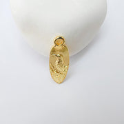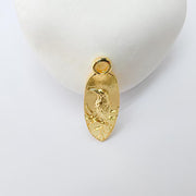 This raven charm pendant showcases a detailed embossed raven perched on a branch, symbolizing wisdom, mystery, and transformation. Its oval shape and shiny gold plating make it a striking choice for creating meaningful, nature-inspired, or boho-style jewelry pieces.
