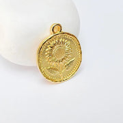 This sunflower charm pendant features a detailed embossed floral design with a round frame β a radiant choice for creating meaningful and nature-inspired jewelry pieces. Its shiny gold finish highlights the sunflower motif beautifully, making it ideal for boho, rustic, or summer-themed designs.