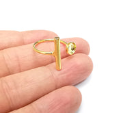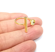 Gold Plated Bar Ring Blank Base Bezel Settings Cabochon Base Mountings Adjustable , Shiny Gold Plated Brass (6mm Blank) G33564