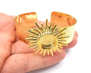 Sun Bracelet Blank Resin Dry Flower inlay Blank Cuff Bezel Glass Cabochon Base Textured Adjustable Shiny Gold Plated (16mm ) G27793