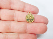 This Tree of Life pendant charm symbolizes growth, harmony, and connection between heaven and earth. Its finely detailed engraving and elegant round shape make it a meaningful and versatile piece for your jewelry designs.