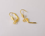 Pearl Earring Post Wire with Clasp 4 Pcs (2 pairs) 24K Shiny Gold Plated Brass Earring Hook ,Findings G22947