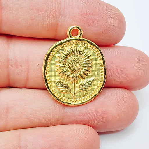 Sunflower Pendant Charm, 24k Shiny Gold Plated Zamac, Nickel Free Lead Free, 30x13mm Jewelry Making Supplies, G37494