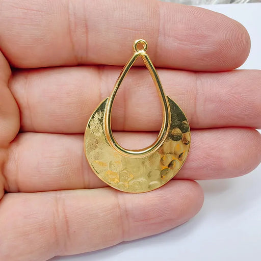 Hammered Teardrop Earring Component, 38x23mm Drop Charm, 24k Shiny Gold Plated Brass Jewelry Finding, G37517