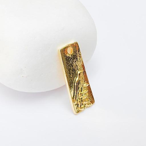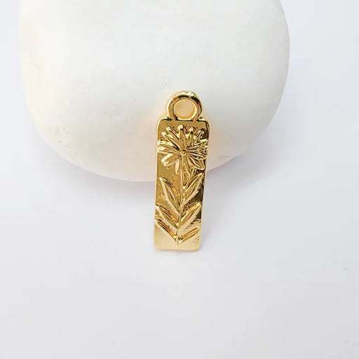 Flower Charm Pendant, Rectangular Bar Design, 24k Shiny Gold, 28x8mm, G37376