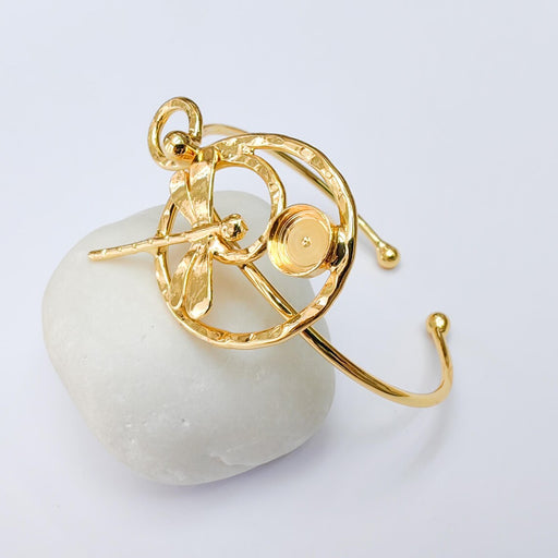 View full detailsDragonfly Bracelet Bezel, Adjustable Cuff Bangle, Boho Jewelry Making Supplies, Shiny Gold Brass, 8mm G37355