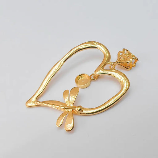 View full detailsHeart Pendant Bezel with Dragonfly, Large Brass Pendant, 8mm Bezel Cup, 24k Shiny Gold, Jewelry Making Supplies, G37360