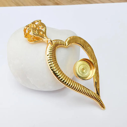 View full detailsHeart Pendant Bezel, 12mm Round Setting, 24k Shiny Gold Brass, Large Statement Jewelry Making, 67x32mm G37370