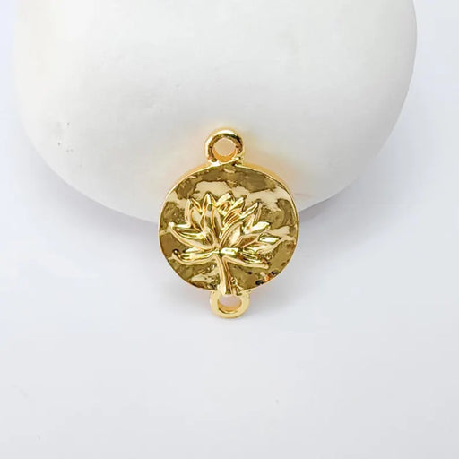 Elegant lotus flower pendant connector with a hammered texture and shiny gold plated finish. This symbolic design is ideal for boho, spiritual, and...