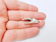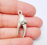 Crab Claw Pendant, Ocean Themed Charm, Realistic Lobster Claw, Rustic Nautical Jewelry Supplies, Antique Silver Plated 34x12mm G37228