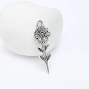 2 Daisy Flower Charm, Boho Floral Pendant, Spring Flower Charm, Botanical Jewelry Supply Findings, Antique Silver Plated 35x12mm G37007