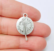 Dandelion Pendant, Botanical Wish Flower Charm, Boho Nature Necklace Part, Earring Making Supply, Antique Silver Plated 29x19mm G37208