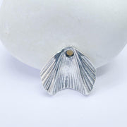 Antique silver plated scallop shell charm featuring a finely textured sea shell design with natural ridges and a softly contoured fan shape. This small pendant is inspired by coastal and ocean themes, making it ideal for creating necklaces, bracelets, earrings, anklets, and delicate handmade jewelry designs.
