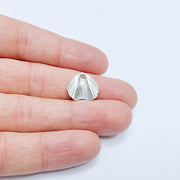 4 Fan, Scallop Shell Charm Pendant, Textured Sea Shell Design, Antique Silver Plated, 15x14mm, G37798
