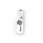 2 Silver Dandelion Charms, Rectangle, Rustic Charms, Earring Charms, Silver Pendant, Necklace Parts, Antique Silver Plated 34x9mm G36535