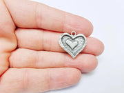 Double Heart Charm, Heart Pendant, Romantic Boho Jewelry Supply, DIY Necklace Bracelet Craft, Love Symbol, Antique Silver Plated 23mm G36901