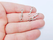 These antique silver plated metal link connectors are perfect for adding unique structure to your jewelry designs. Featuring a sleek bar shape with loops on both ends, they serve as versatile connectors for necklaces, bracelets, or earrings. Ideal as spacer bars or design elements, these lightweight and durable connectors offer endless possibilities for DIY jewelry projects. Whether you are creating modern, minimalist, or layered jewelry, these components are a great addition to your collection.
