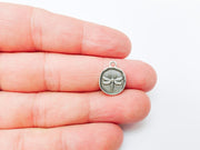 Capture the spirit of transformation and double sided grace with this antique silver plated dragonfly pendant. This beautifully crafted round charm features a raised dragonfly motif framed by a delicate beaded border—perfect for nature-inspired and symbolic jewelry pieces.