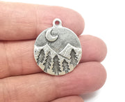 Round mountain tree charms are made of nickel free and lead free antique silver plated zinc alloy metal. Size : 29x25 mm.