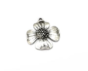 Cranberry Flower Charms, Antique Silver Plated Dangle Charms (30x27mm) G33259