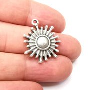 Sun charms are made of nickel free and lead free antique silver plated zinc alloy metal. Size : 26x23 mm.
