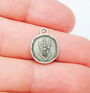 This tiny round pendant features a beautifully detailed lavender plant motif, perfect for nature-inspired or minimalist jewelry. Crafted from antique silver plated zamac, it is lightweight and ideal for earrings, necklaces, or bracelets. Both sides feature the same elegant flower design, offering versatility and symmetry for your creations.