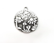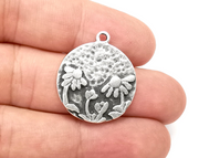 Flower daisy charms are made of nickel free and lead free antique silver plated zinc alloy metal. Size : 28x24 mm.