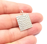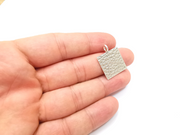 Hammered Square Pendant (20x20mm) Antique Silver Plated Brass G28449