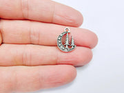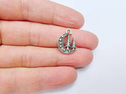 This enchanting pendant features a crescent moon adorned with stars and two elegant pine trees, perfect for nature lovers and celestial enthusiasts. Crafted from durable materials with an antique silver plated finish, this charm adds a whimsical, forest-inspired touch to necklaces, bracelets, or keychains. Its intricate details make it a standout piece for boho, mystical, or woodland-themed jewelry designs.