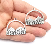 Mountain Landscape Forest Pendant Charms Antique Silver Plated