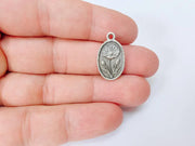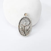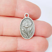 This oval poppy flower charm pendant showcases a beautifully embossed floral design, perfect for creating meaningful and nature-inspired jewelry. Its antique silver plated finish highlights the botanical motif, making it an elegant choice for boho, rustic, or vintage-style creations.