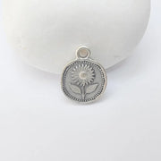 Sunflower Charm Pendant, a detailed double sided round pendant featuring a sunflower design β perfect for creating nature-inspired jewelry pieces.