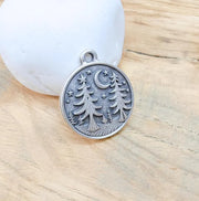 Bring the peaceful beauty of a moonlit forest into your jewelry collection with this antique silver-plated pendant. Featuring a detailed design of pine trees under a crescent moon and scattered stars, this charm captures the magic of nature at night. Perfect for outdoor enthusiasts and those who love unique, nature-inspired jewelry, this pendant can be used in necklaces, bracelets, or other creative projects. Made with high-quality materials, itβs an excellent choice for anyone seeking a rustic, woodland charm that adds a touch of mystery and elegance to any outfit.