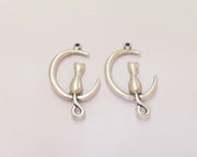 4 Cat Charms Antique Silver Plated Charms (37x21mm) G22992