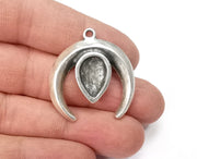 Crescent Seed Charms Pendant Antique Silver Plated Charms (34x31mm) (14x10mm) G27899