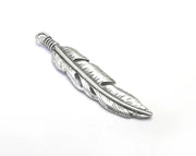 2 Feather Charms Pendant Antique Silver Plated Charms (52x11mm) G29765